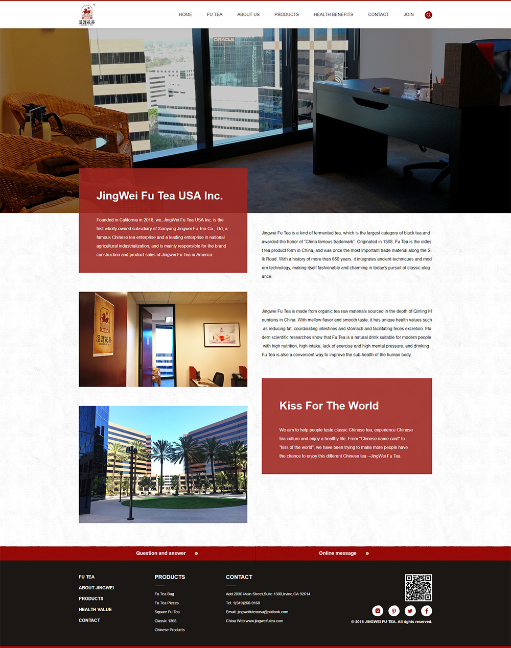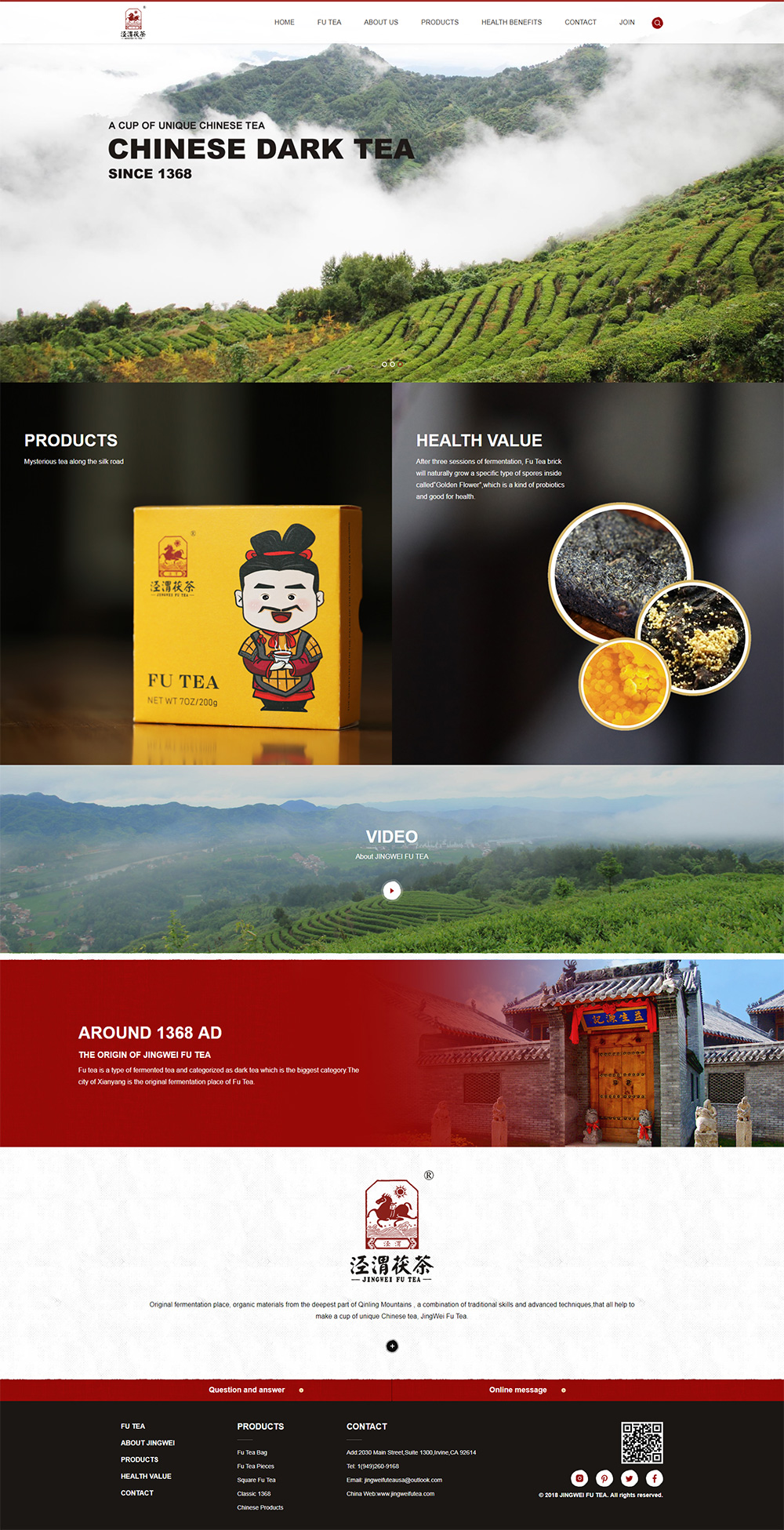 Founded in California in 2018, we, JingWei Fu Tea USA Inc. is the first wholly-owned subsidiary of Xianyang Jingwei Fu Tea Co., Ltd, a famous Chinese tea enterprise and a leading enterprise in national agricultural industrialization, and is mainly responsible for the brand construction and product sales of Jingwei Fu Tea in America.