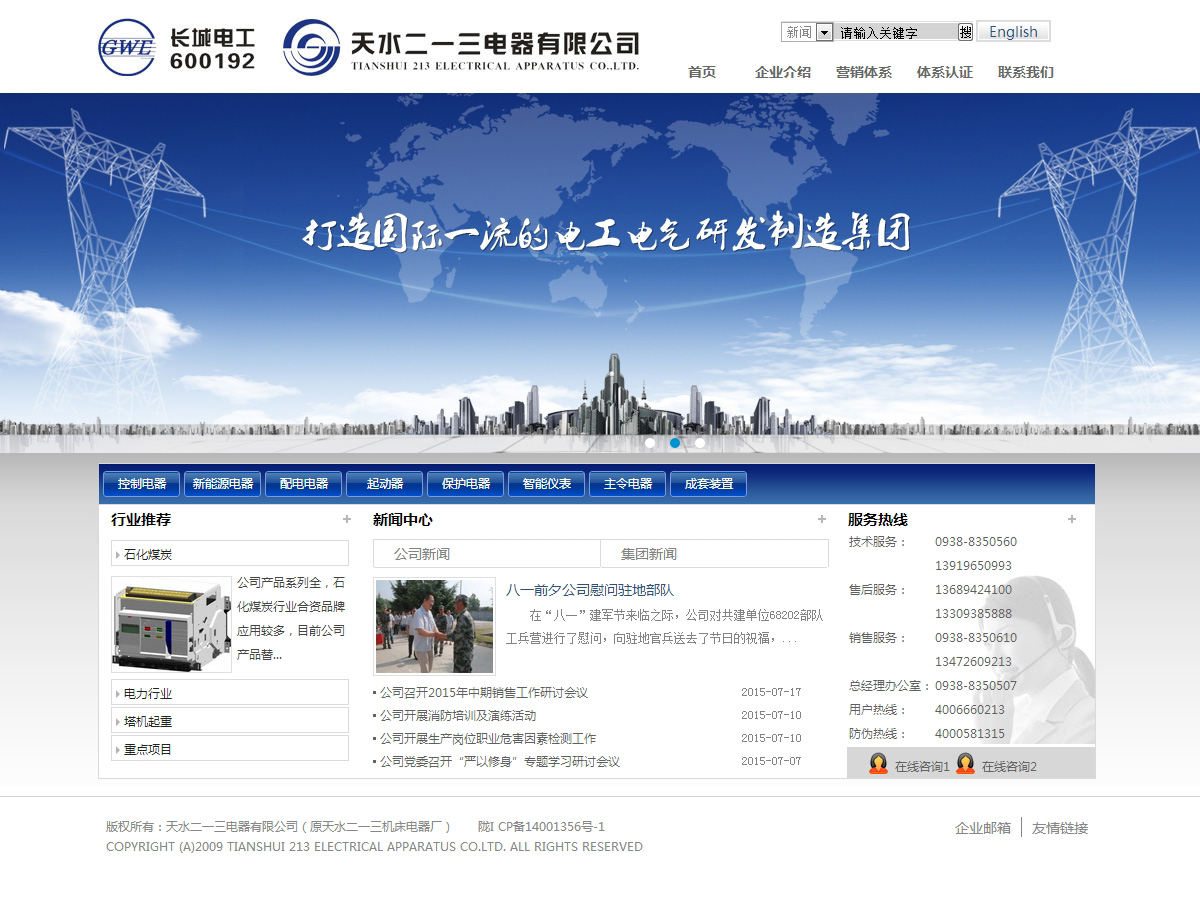 天水二一三電器有限公司是我國專(zhuān)業(yè)研發(fā)、制造、銷(xiāo)售低壓電器元件、電氣成套裝置設備和工裝模具的綜合性企業(yè),為上市公司——蘭州長(cháng)城電工股份有限公司的全資子公司。